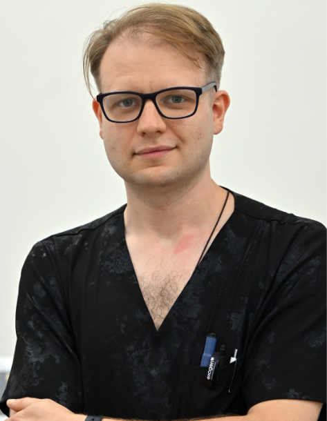 Specjalista ortopedii i traumatologii narządu ruchu (dyplom uzyskałem w 2025 roku), na co dzień pracuję w Klinice Chirurgii Urazowej i Ortopedii oraz Oddziale Chirurgii Rekonstrukcyjnej Narządu Ruchu i Replantacji 5. Wojskowego Szpitala Klinicznego w Krakowie.